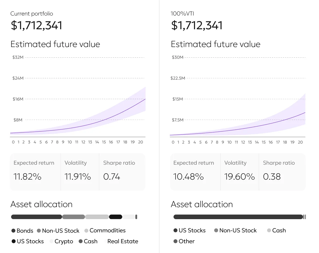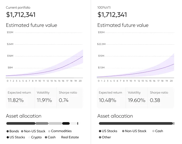Simulate rebalancing, new contributions, or liquidations before committing. See how changes impact your allocation, projected returns, and risk — all before you make a single trade.